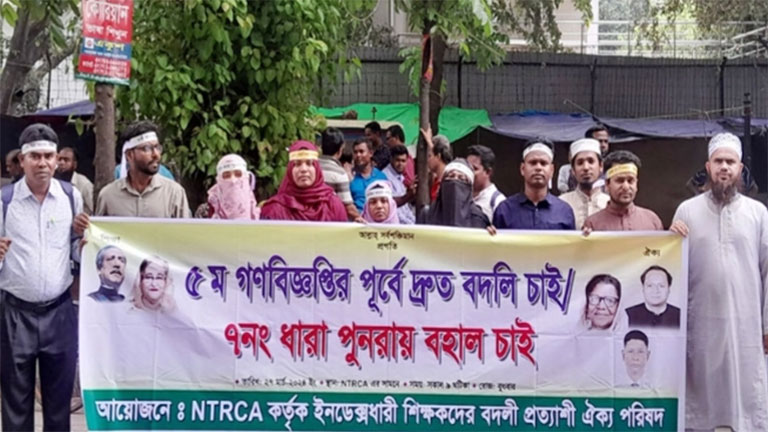 পঞ্চম গণবিজ্ঞপ্তি প্রকাশের আগেই বদলির প্রজ্ঞাপন জারির দাবিতে মানববন্ধন করেছেন বেসরকারি শিক্ষাপ্রতিষ্ঠানের শিক্ষকরা। বুধবার (২৭ মার্চ) সকালে বেসরকারি শিক্ষক নিবন্ধন ও প্রত্যয়ন কর্তৃপক্ষের (এনটিআরসিএ) কার্যালয়ের সামনে এ কর্মসূচি পালন করেন তারা।