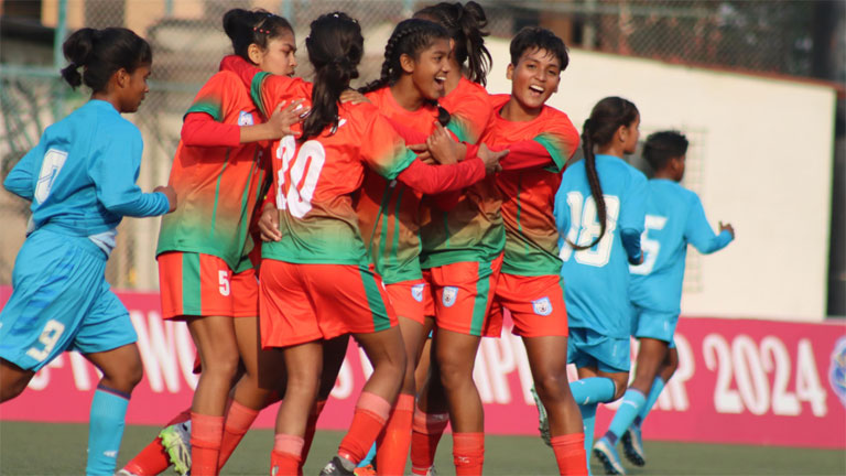 নেপালে সাফ অনূর্ধ্ব-১৬ নারী চ্যাম্পিয়নশিপের ফাইনালে টাইব্রেকারে ভারতকে ৩-২ গোলে হারিয়ে শিরোপা জিতল বাংলাদেশ। নেপালের ললিতপুরের অনফা কামপ্লেক্সে নির্ধারিত সময়ের খেলায় ১-১ সমতা ছিল।